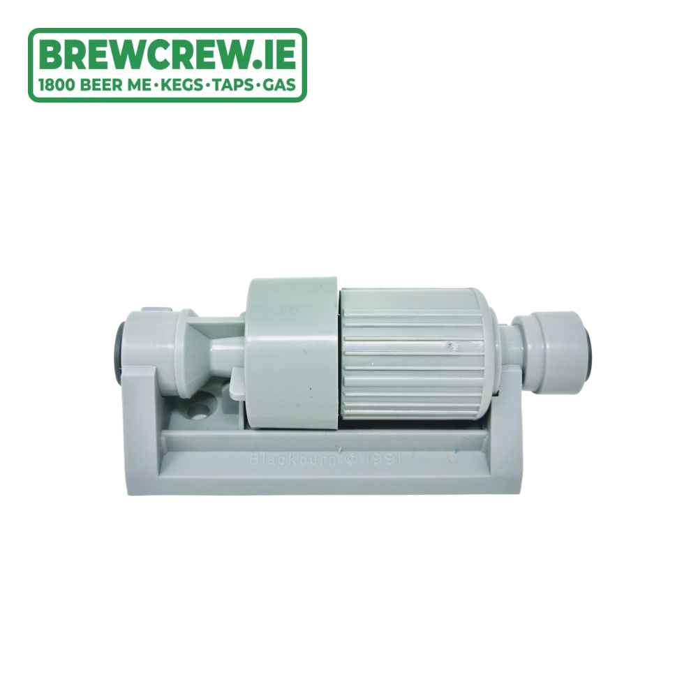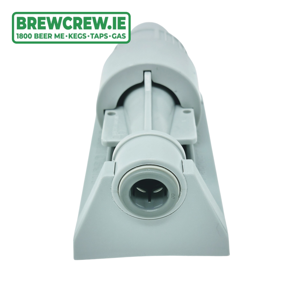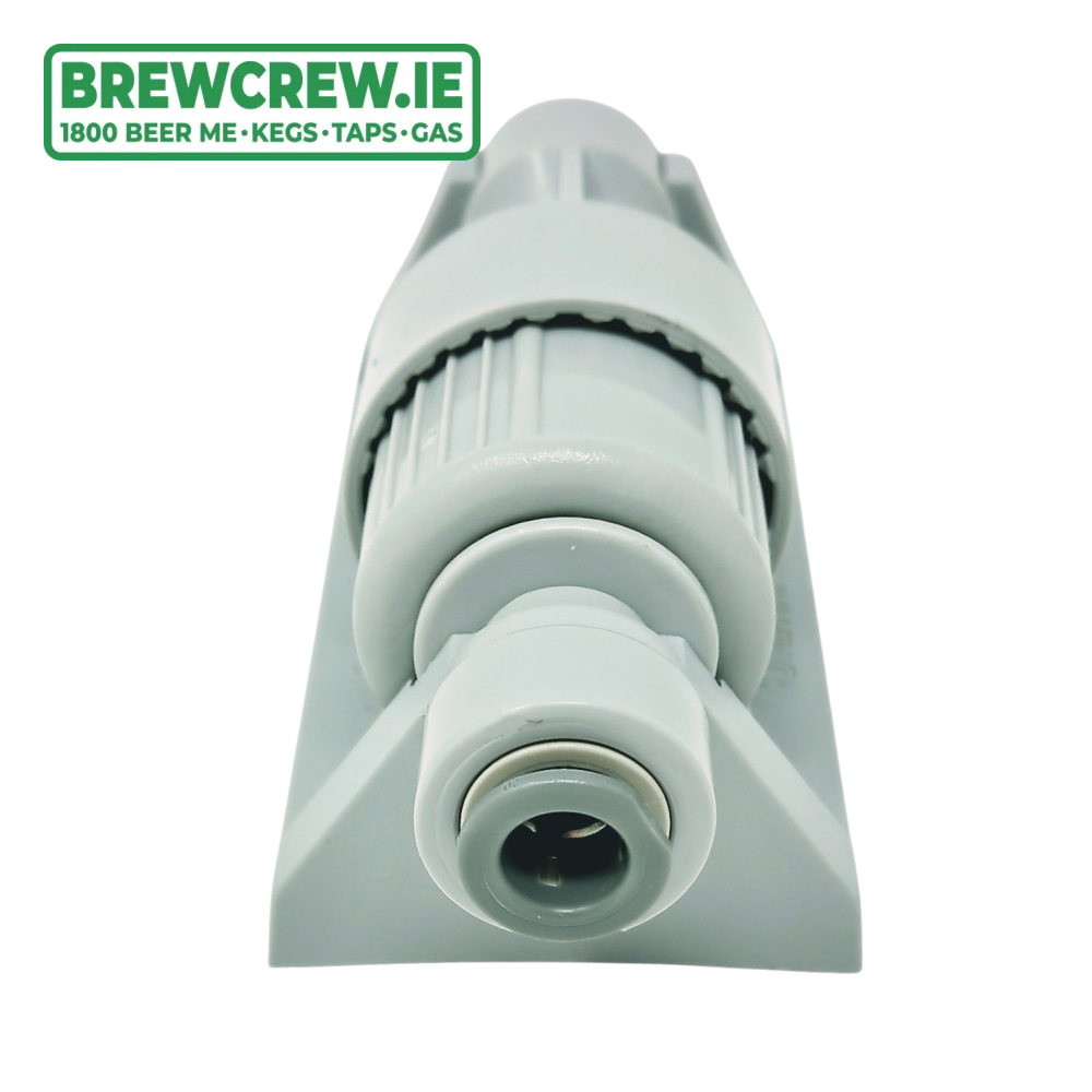 The push-Fit flow controller can be mounted on any hard surface using the mounting cradle or left suspended from the beer line.