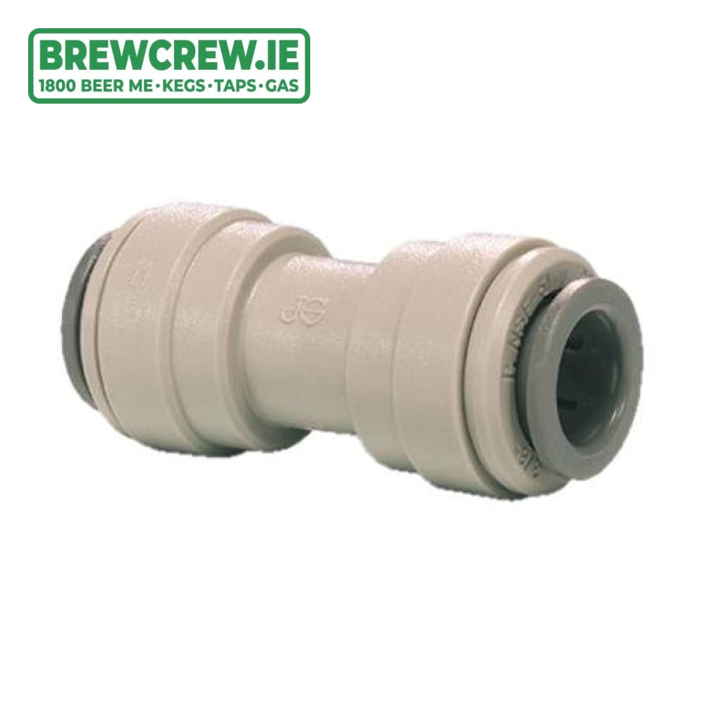John Guest Straight Connector Push Fit 1/2" to 1/2" Push Fit, which is produced in a grey acetal copolymer making it especially suitable for applications involving potable liquids and foodstuffs.